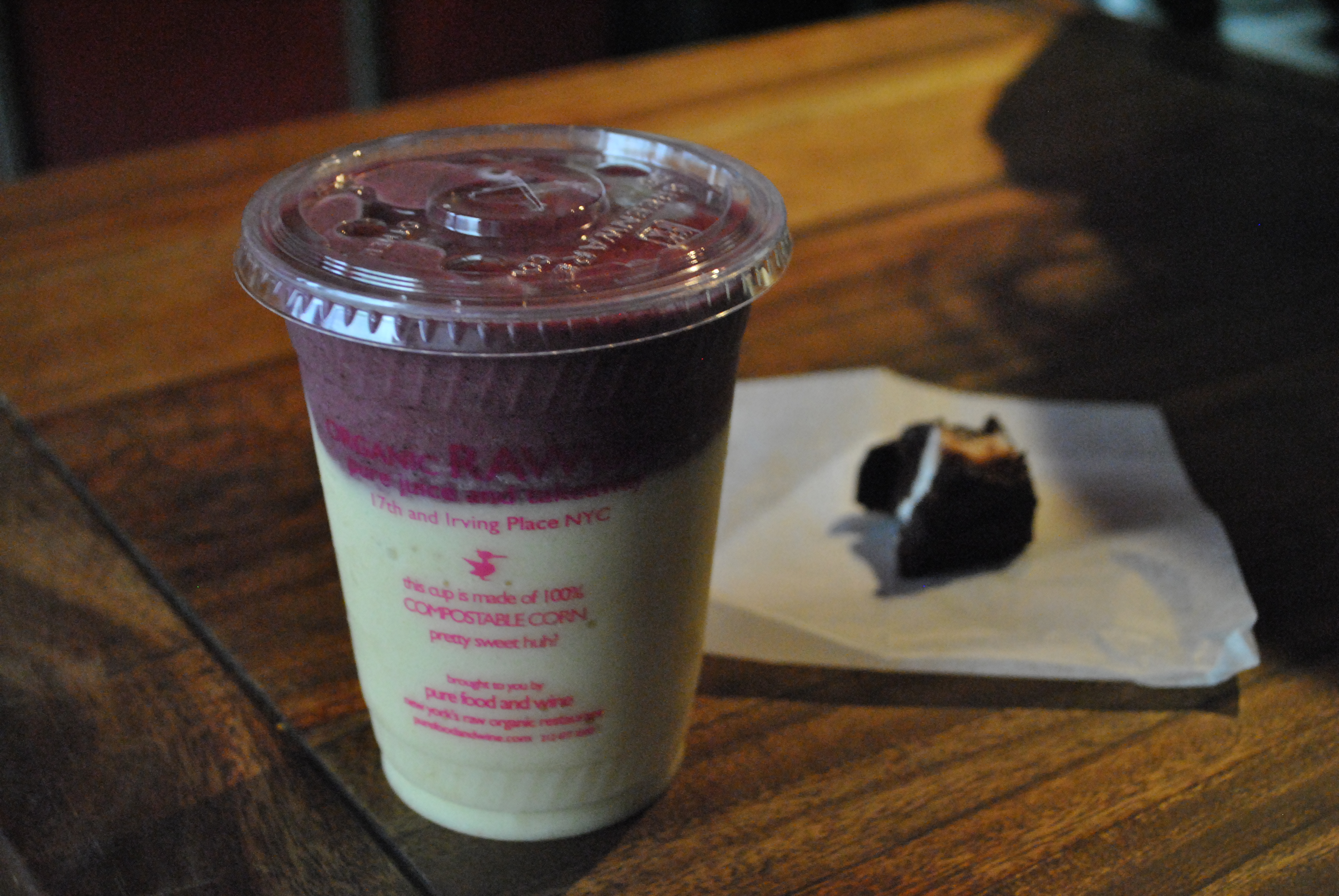 While in NYC this past weekend I dragged some of my friends to One Lucky Duck Juice & Takeaway Bar (I swear I’m not affiliated with them, just love it!). I got a Blue Sunset shake and a moon pie. It was pretty pricey, but well worth it for a once in a while splurge.